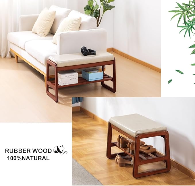 - 【Quality material】The whole solid wood shoe bench is made of 100% rubber wood material, solid wood texture is good and hard, beautiful pattern, decorative strong, very environmentally friendly.