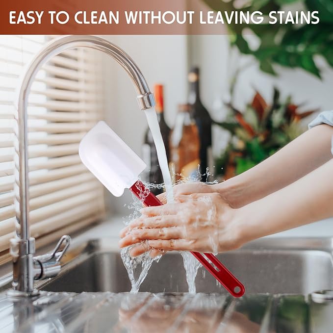 - Easy to Clean: these heat proof spatulas with handles are nonstick and convenient to wipe clean with a damp sponge in minutes without stains or odor residue; And they are dishwasher safe, which can save you much time and effort in cleaning and bring you more enjoyable use experiences