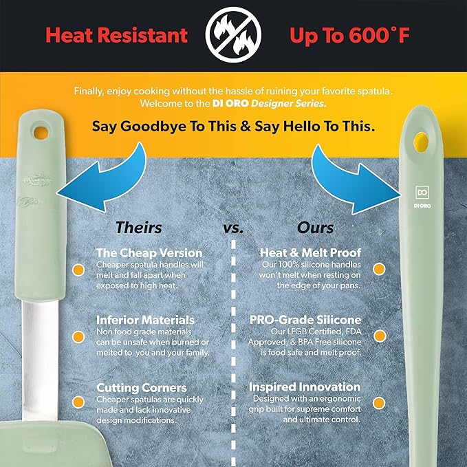 - ONLY THE BEST – By popular demand, we have added a Silicone Ladle to our Award-Winning Seamless Series line of kitchen utensils. The Di Oro Seamless Series Ladle is made with food grade, BPA Free, and LFGB Certified Silicone. Built to withstand the heat, this ergonomically designed tool is heat-resistant up to 600°F, which means you will never melt your favorite kitchen utensil.