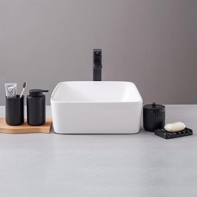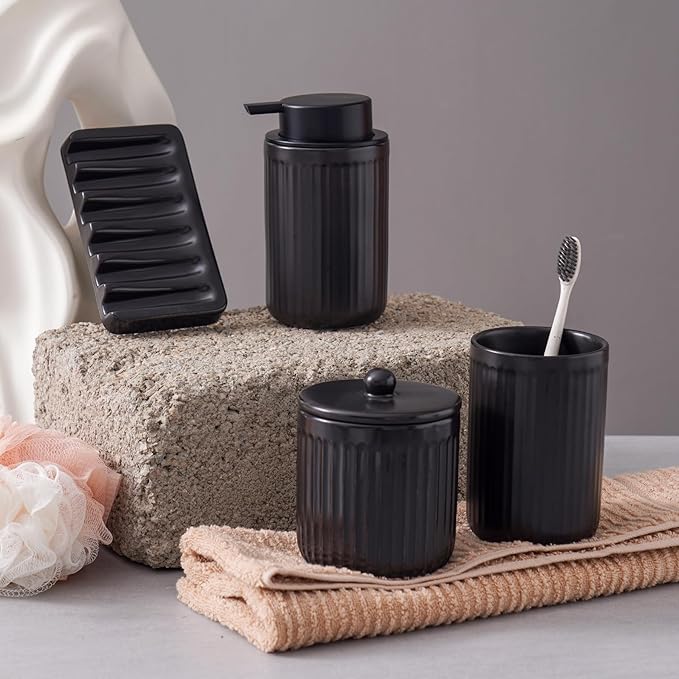 - Space Saving Design:Each accessory in this bathroom set is carefully designed to optimize your bathroom countertop space and keep it neat and organized. Portable and easy to use at home. This bathroom accessory set features a modern and elegant design, making it a highlight in your bathroom décor.