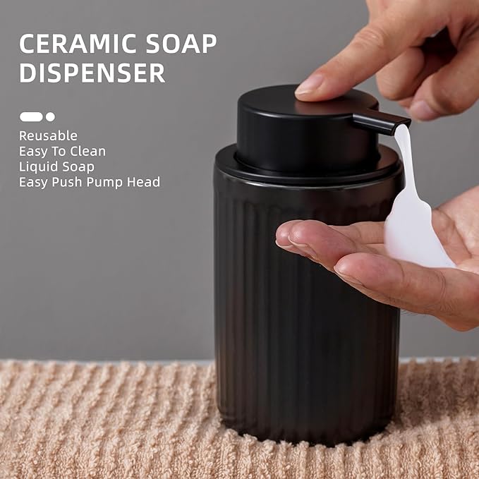 - Liquid soap dispenser: Made of high quality ceramic, it can hold a variety of liquid detergents for daily use. Large spout design is easy to fill and change liquid detergent.