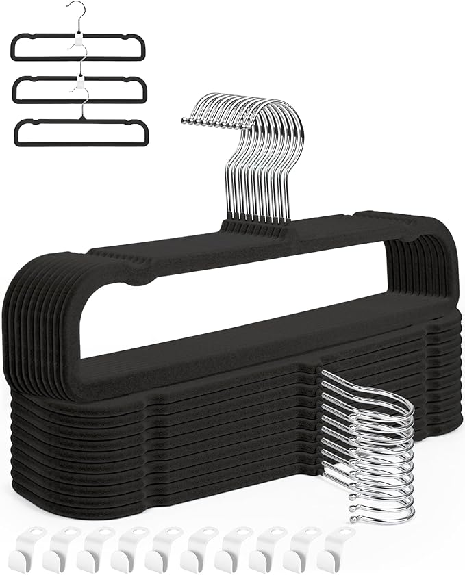 - Space-saving Design: Our adult hangers with 10pcs clothe hanger connector hooks are designed to maximize closet space and keep it organized. They can hold multiple pairs of pants, saving valuable closet space for men and women.