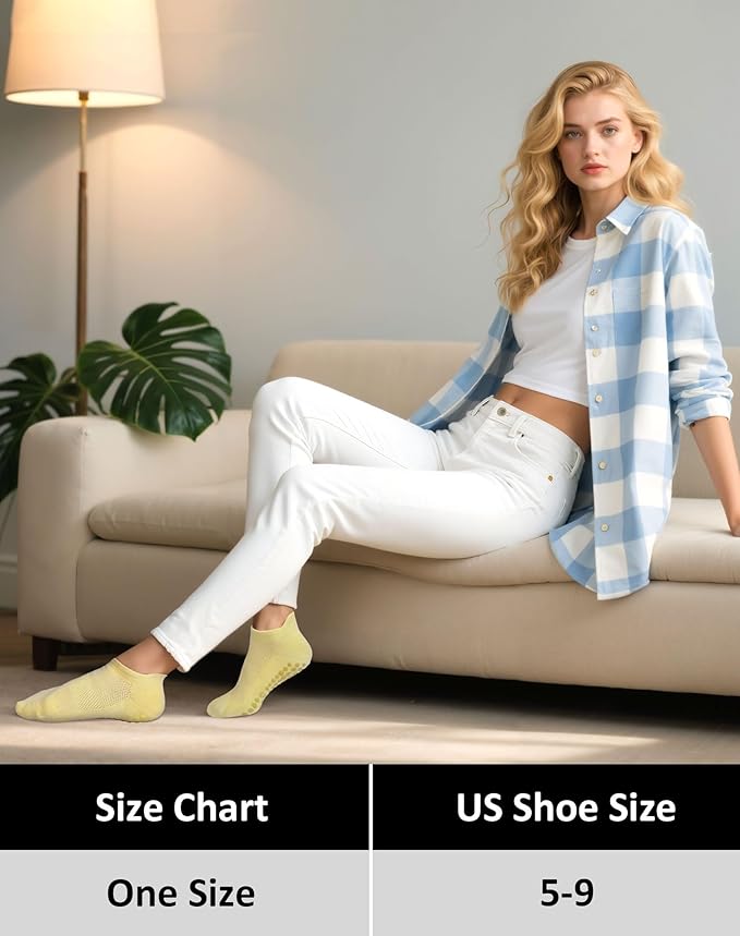 - Elastic Design: This yoga socks with good elasticity and resilience ?provide good wrapping and support to reduce fatigue and discomfort when you move; Pilates grip socks women are suitable for many people, the socks sizes are suitable for womens shoe size 5-9