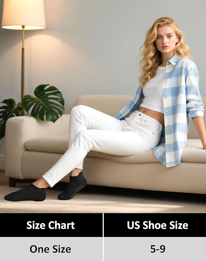• Elastic Design: This yoga socks with good elasticity and resilience ?provide good wrapping and support to reduce fatigue and discomfort when you move; Pilates grip socks women are suitable for many people, the socks sizes are suitable for womens shoe size 5-9