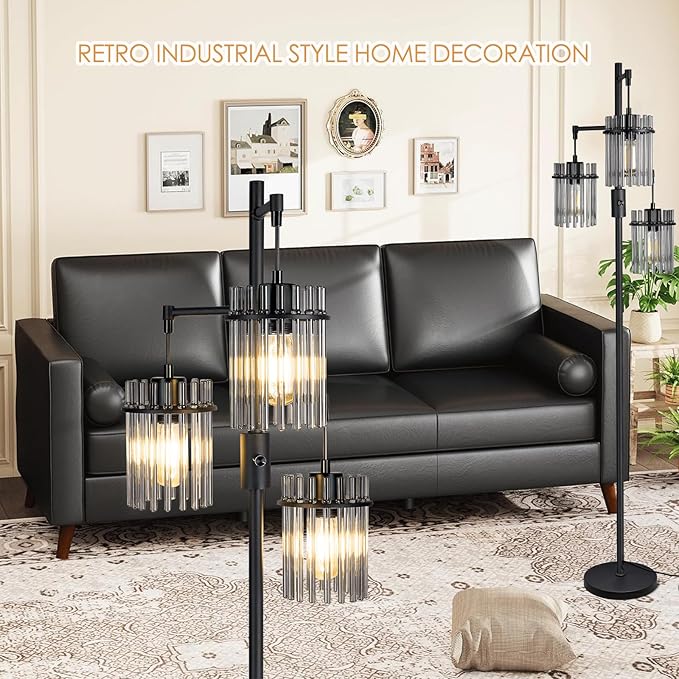 - Retro Industrial Style Home Decoration: Farmhouse floor lamp combines three glass cage lampshades with a black metal lamp pole, showcasing a minimalist and modern charm, seamless paired with any decoration, presenting a vintage color effect. Rustic floor lamp can provides an elegant and warm ambiance, is perfect lamp for your family and friends