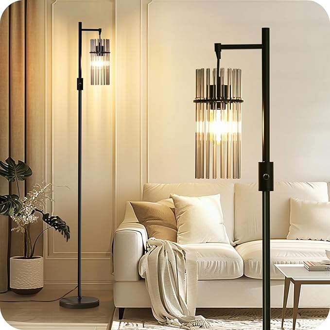 - Retro Floor Lamp with Industrial Design: This industrial floor lamp has a simple design, the glass shade followed by many glass rods, which is easy to match with different styles of furniture. The tall pole lamp doesn't take up much space, saving more space for small rooms. Farmhouse floor lamps can create an elegant and cozy atmosphere, is a perfect lamp for your family and friends