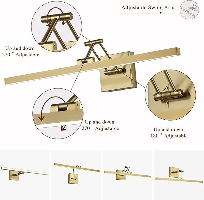LED Brass Hard-Wired Connection Gallery Picture Light for Paintings Gold Lighting Fixtures Dimmable Modern LED Picture Lights Artwork Display Lighting 23.6 Inch 14W 3000K Warm White
