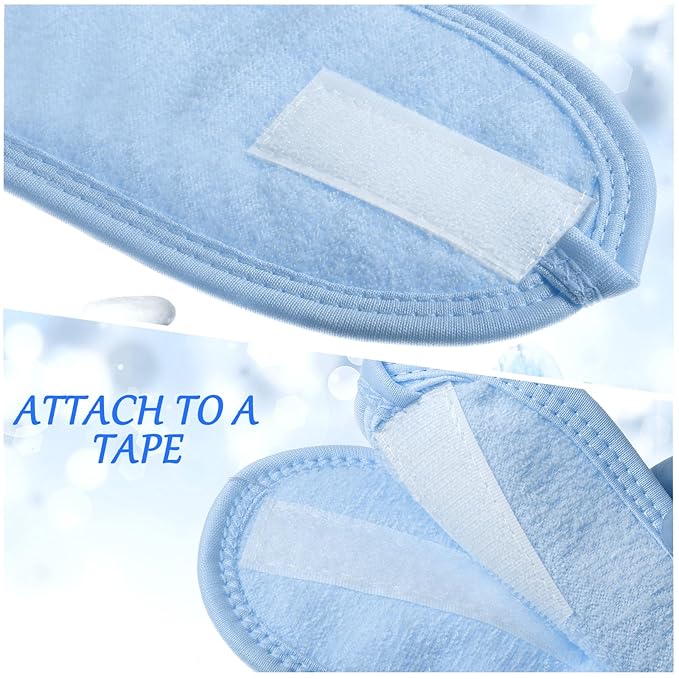 Hoteam 30 Pack Spa Headband Facial Esthetician Hair Wrap for Women Adjustable Makeup Sports Shower Stretch Towel with Tape(Blue)