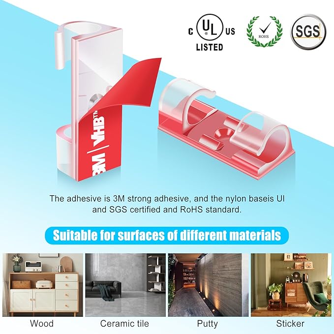 - High quality material:XHF Adhesive Cable Clips are manufactured from 3M Strong Adhesive and PA66 nylon.