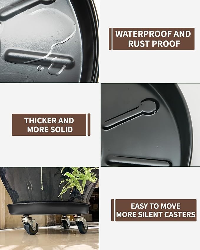 - 360° UNIVERSAL LOCKABLE CASTERS: Each plant roller features 4 360° universal casters, 2 of which are lockable. Made of solid rubber for superior load-bearing capacity and versatility across diverse terrains. Rolls silently to guarantee noiseless operation