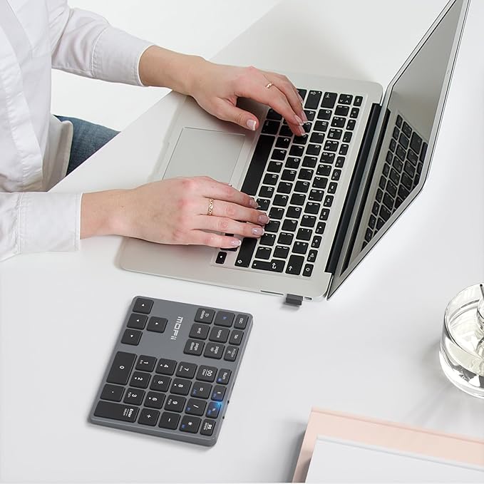 MOFII Bluetooth Number Pad for Laptop - Gray Wireless Numeric Keypad 35 Keys USB-C Rechargeable Numpad, Accounting Portable Financial Data 10 Key for Laptop/PC/Desktop/Notebook/Surface Pro