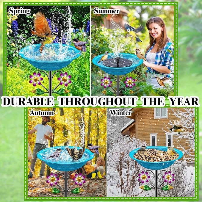 - 【Sturdy & Stable Birdbath】The bird bath is made of high-quality metal materials and coated with a safety protection layer, which is sturdy and durability to avoid rusting.