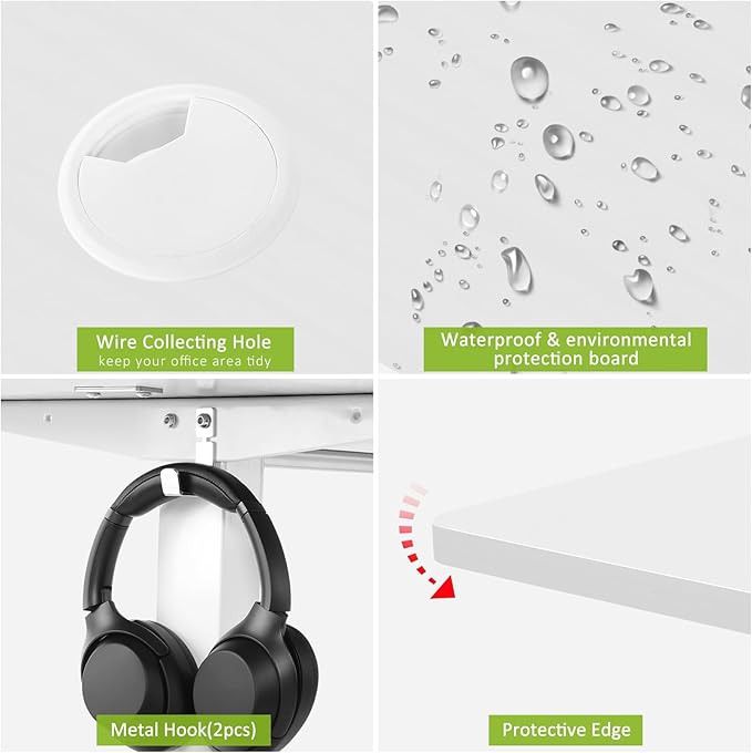 - 【Anti-collision technology & Double Beam Structure】Standing desk has anti-collision technology and current protection function. When encountering obstacles during the ascent, it will lift in the opposite direction, making it safer to use.Industrial-grade double-beam metal frame support combined with a sturdy desktop that lasts longer than single-beam construction and can hold up to 200 lbs, Please not places heavy objects alone on one side of the table.