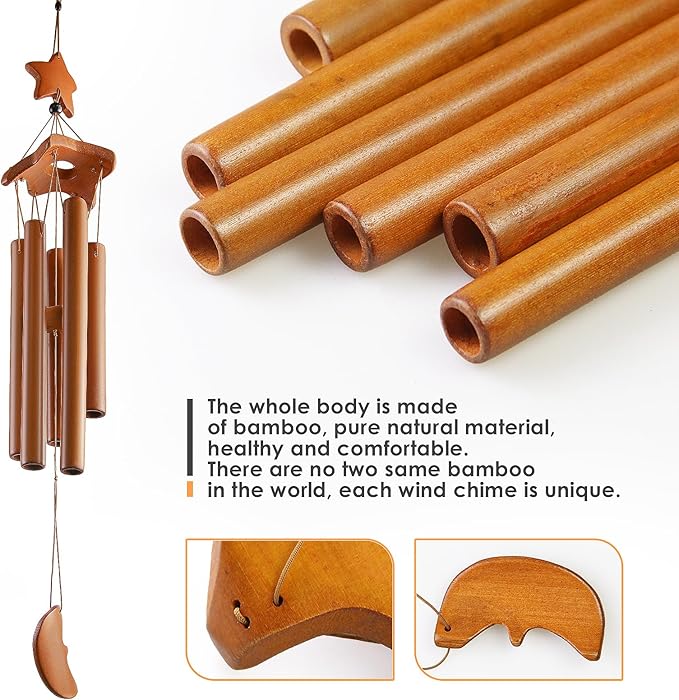 - NATURAL BAMBOO RHYTHM: Our outdoor bamboo wind chime is made of high-quality bamboo, producing a soft, serene tone. Enhance your backyard or window with the harmonious sounds of nature