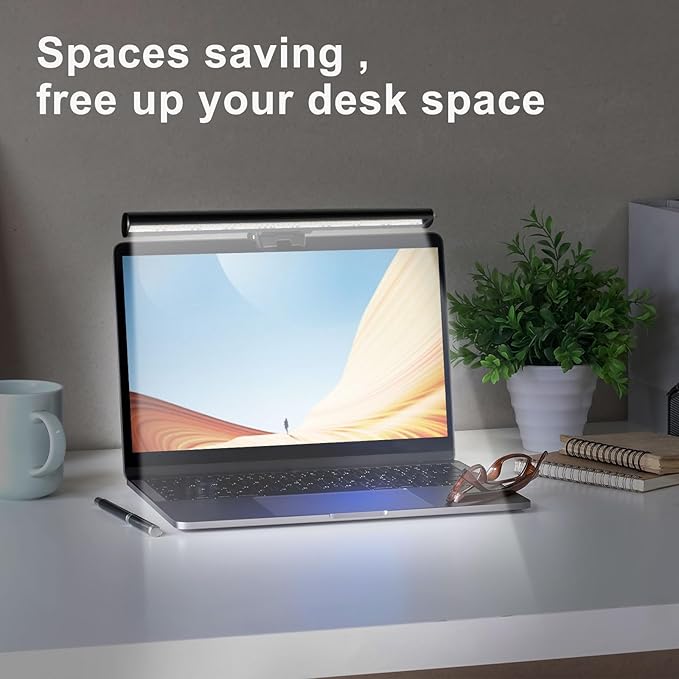 - 【Free up Desk Space】 Unique fixing structure design not only makes this computer monitor light sitting on top of the laptop stably, but also won't block your laptop camera, please enjoy the vedio communication with your friends . Frees up a lot of desk space, it is perfect choice for children, students, and office staff, ideal gift.
