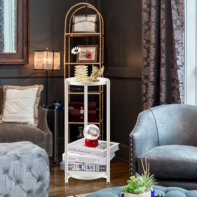 2 Tier Plant Stand Indoor Tall, White Corner Tiered Round Plant Stand for Indoor Multiple Plants, Metal Flower Pot Stands Outdoor Holders Plant Shelf Display Rack for Balcony Living Room