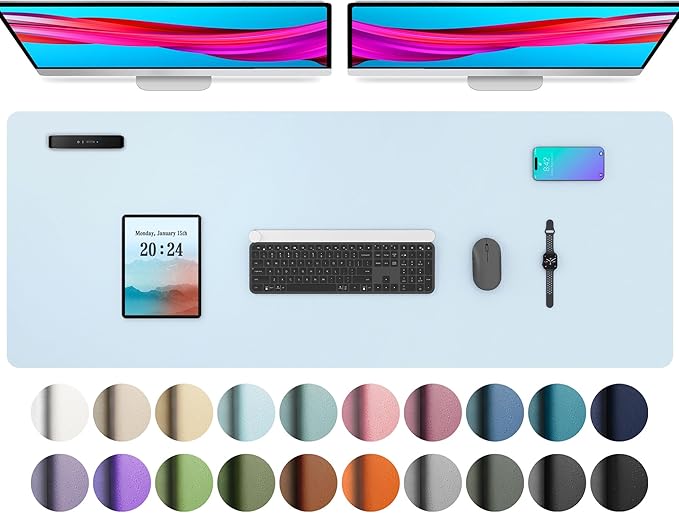 Aothia Leather Desk Pad Protector, Office Desk Mat, Large Mouse Pad, Non-Slip PU Leather Desk Blotter, Laptop Desk Pad, Waterproof Desk Writing Pad for Office and Home (48"x17", Baby Blue)