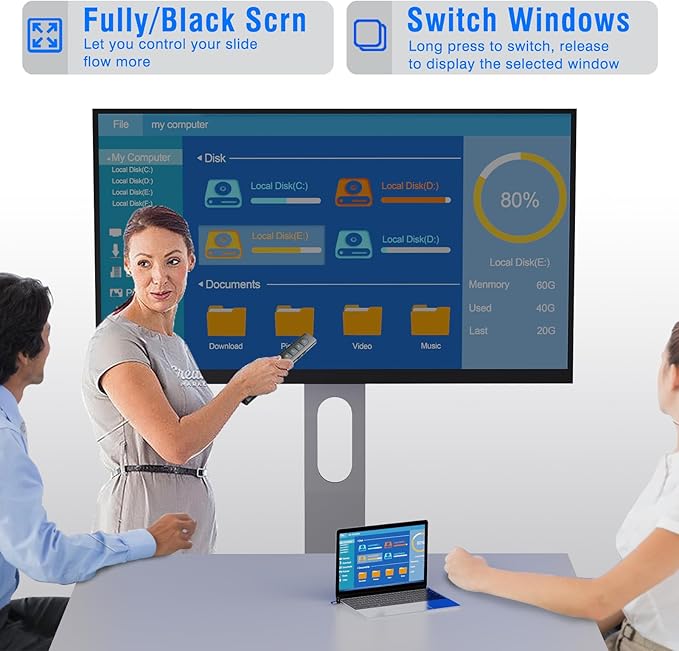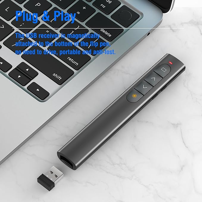 - 【Plug and Go】Slide into your presentation with ease-just pop out the USB receiver from the remote, plug it into your computer or any device, and start your amazing lesson. No setup hassle required. Its clever one-piece USB design ensures hassle-free storage, so you'll never misplace it again.
