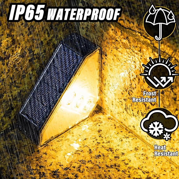 - Waterproof & Long-Lasting: IP65 waterproof outdoor solar step lights, with high-quality ABS material design, installed outdoors, not afraid of the sun and rain, just need to keep the solar panel clean, can provide you with ultra-long time lighting at night