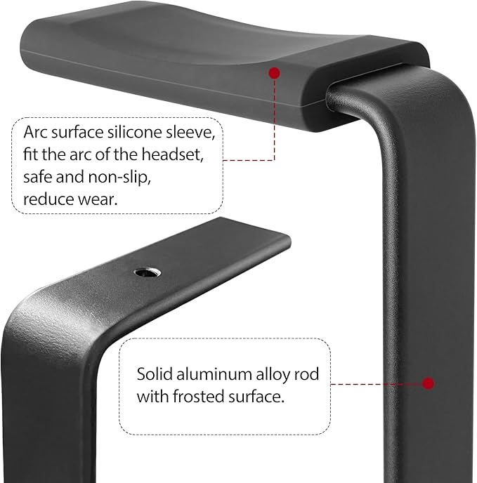 - ENHANCED DESIGN: The headphone stand features a special silicone protective cover that fits all headphone models perfectly. It is secure and non-slip, providing superior protection for your headphones and minimizing wear and tear. This design works well with wireless headsets and gaming earphones, ensuring compatibility with various types of auriculares.