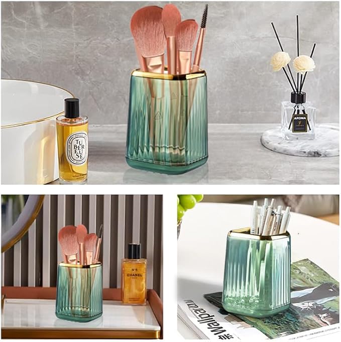 - Broadly Applicable: The unique pencil cups for desk is unique, extremely concise, compact, This turntable pencil holder for your desk is not only perfect for storing your desktop stationery such as pens, pencils, markers, highlighters, rulers, staplers, flash drivers, erasers, paper clips, scissors, letter openers, and many other desk widgets but also great for storing your makeup brushes, nail polishes, lipsticks, and other small personal items.