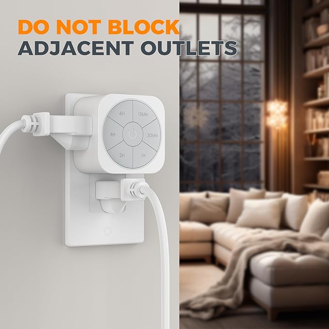 - Customize Schedule for Devices: Timers for electrical outlets indoor supports 15min/ 30min/ 1H/ 2H/ 4H and 6H time schedule setting, which is suitable for your habit of using various home appliances; When you set the unit to turn off after 1 hour, press "1H" and the indicator lights up