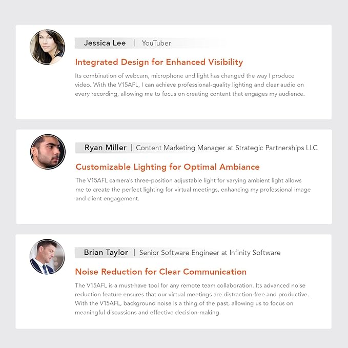 - Auto Light Correction & Easy Setup: V15-AF webcam has a low-light correction, a color boost, and can adjust exposure automatically, keeping the image looking good while you are having video calls or meetings in a darker room, in the early morning or evening. In order to operate the webcam, you only need to plug in the 1,5m long USB 2.0 cable. 3 mounting options available: place it on the desk, clip it on the monitor/laptop, or mount it on a stand/tripod.
