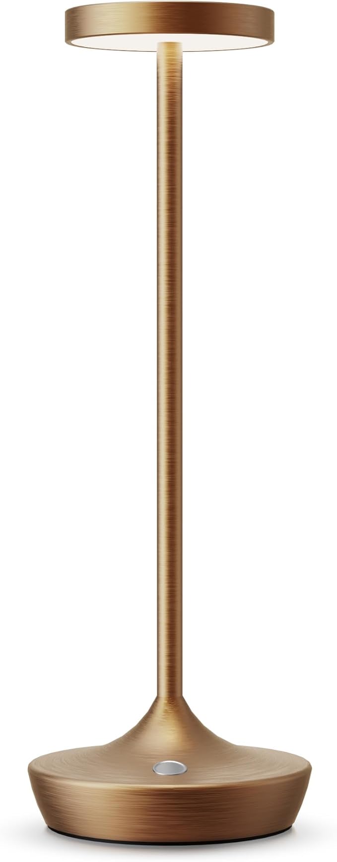 Cordless Table Lamp,Rechargeable Battery Operated LED Desk Lamp, 3-Color Stepless Dimming, Portable & Waterproof, for Restaurants, Bedrooms, Bars, Outdoor Parties, Camping, and Cafes (Bronze)