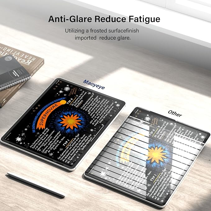 - 【EXCELLENT EYE PROTECTION】Designed with the most advanced AG anti-glare technology, this matte paper iPad pro 12.9 screen protector blocks 93% of blue light and 99% of UV light, reduce dizziness and eye discomfort after long-term use.