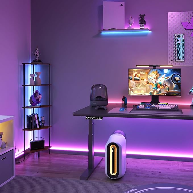 - 【LED Light strip】: This corner shelf is equipped with LED light strip, You can be controlled button freely switch the color,brightness, flashing mode, and frequency of the lights, and can flash according to the rhythm of music. Corner bookshelf will create a cozy atmosphere in every corner of your home at night, enhance your gaming experience in the game room, or add atmosphere while watching a movie in the living room.