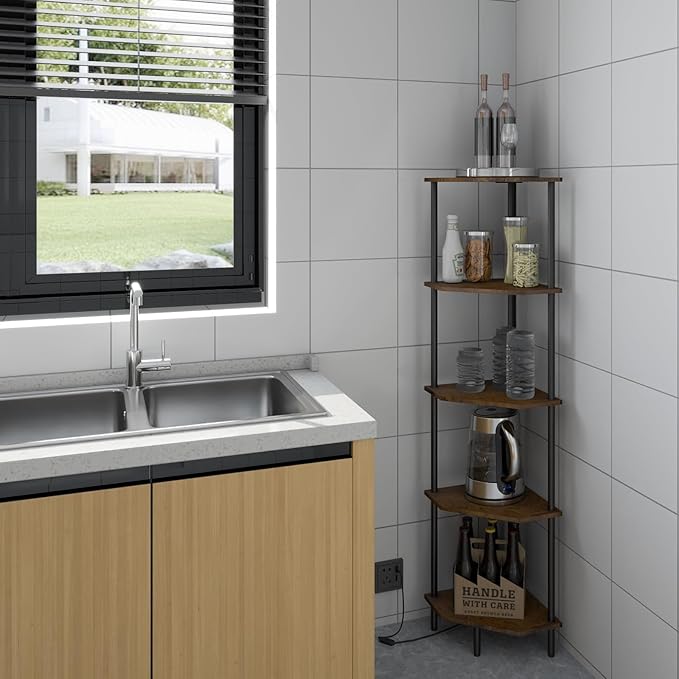- 【Durable and Long-lasting】: Crafted from high-quality materials, our storage shelving are built to last. The thickened metal frame and sturdy wooden shelf board provide excellent durability and reliability. Our tall corner shelf the test of time, providing a long-term storage and display solution for your home or office.