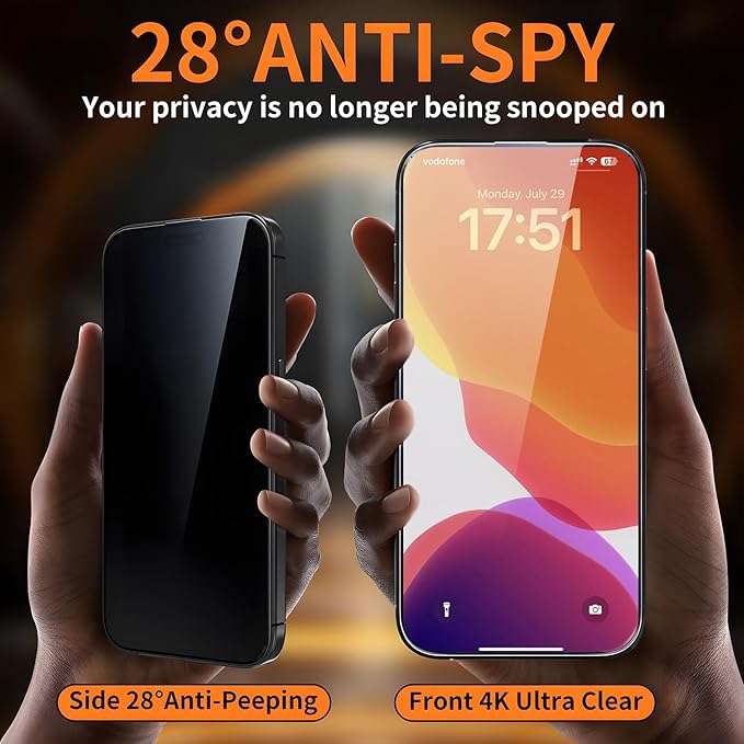 - Enhanced Privacy and Clean Installation: Enjoy 28° anti-peep privacy protection that keeps your screen visible only from the front, safeguarding your privacy in public spaces. Our screen protector includes an installation tray and automatic dust removal tape for effortless application, ensuring crystal-clear clarity and responsive touch sensitivity while maintaining reliable protection.