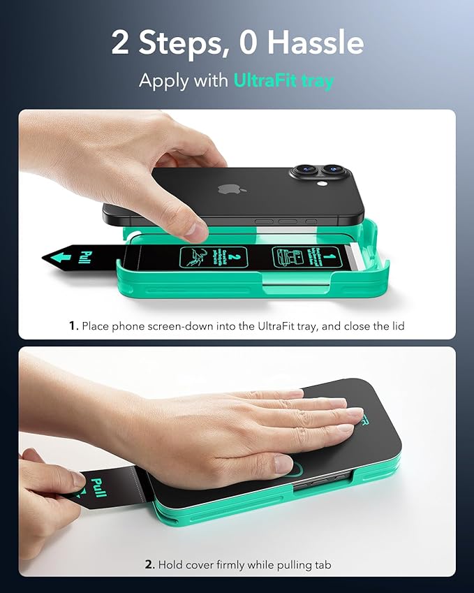 - Flawless Fit in a Flash: includes an UltraFit tray for the screen protector (read carefully before use), a cleaning kit, and a dust-repellent adhesive for quick, bubble-free application