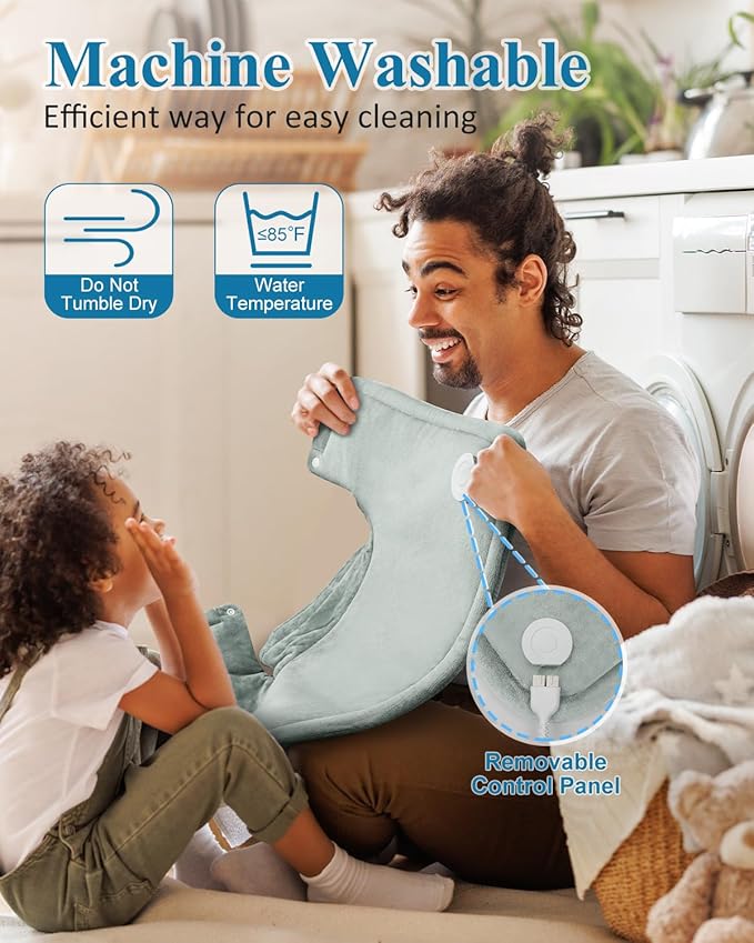 - Convenient and User-Friendly: Our neck and shoulder heating pad boasts a soft, machine-washable fabric for effortless cleaning. Its 7-foot cord offers flexibility, allowing you to use it comfortably from any location. Enjoy soothing warmth and targeted relief while easily maintaining the pad’s cleanliness—ideal for daily use