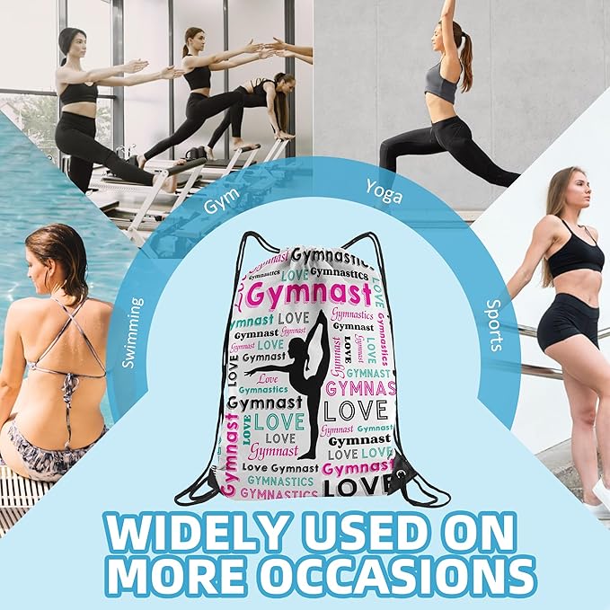 Gymnastics Drawstring Backpack - Team Gifts Bag (White, 1Pcs)