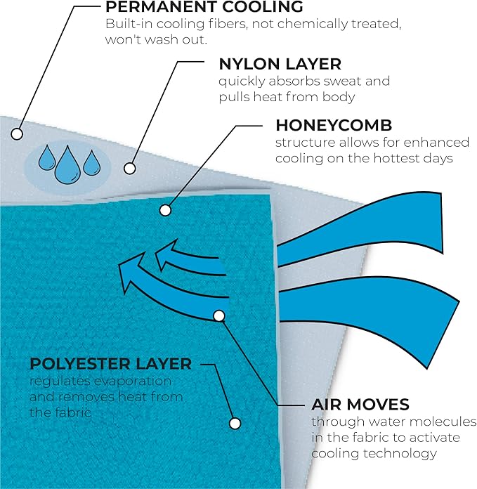 - 💨 SOFT AND LIGHTWEIGHT: Crafted with a soft, lightweight material, this cooling towel is gentle on the skin and effectively absorbs moisture, ensuring quick evaporation to keep you cool and dry.