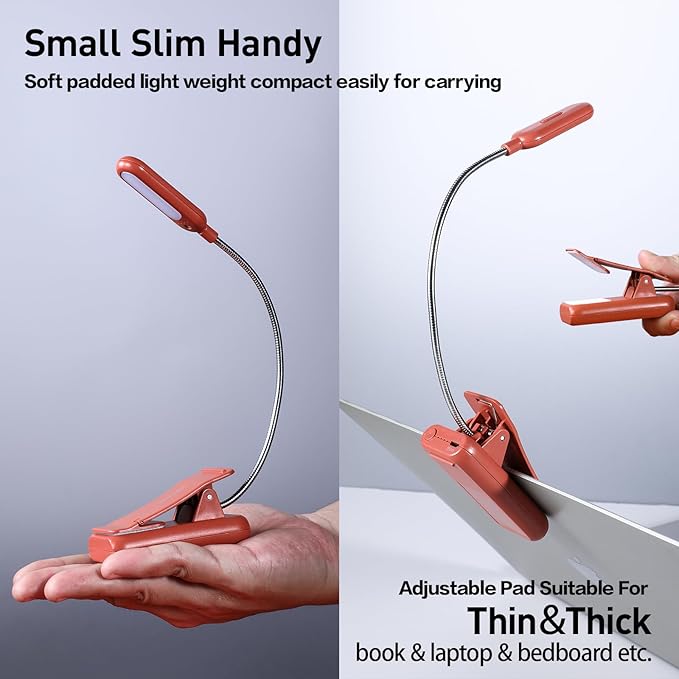 - 【360°Flexible Goose Neck & Non-slip Clip Design】- The Vavofo's reading light has the 360 degree adjustable neck with multi use non-slip clip which allows you to position the light exactly where you need it, creating the perfect private reading space for you while reading in bed, in college dorm, or on a plane, train, or bus. It can also be placed on the tabletop, work surface, etc. The lightweight, portable, & travel-friendly only 2.59 oz weight