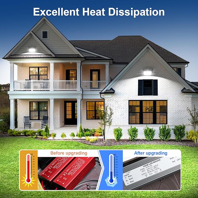 - Safe and Reliable: The dusk to dawn outdoor security light is equipped with a 100-277V high-efficiency LED driver, which has multiple protection functions to prevent flickering, overvoltage, and other issues, allowing you to use it with more confidence.