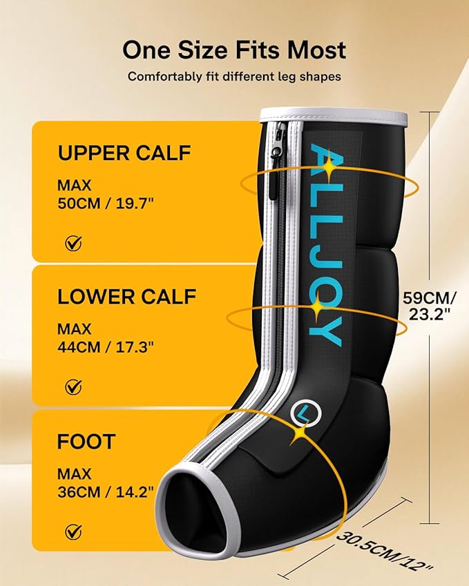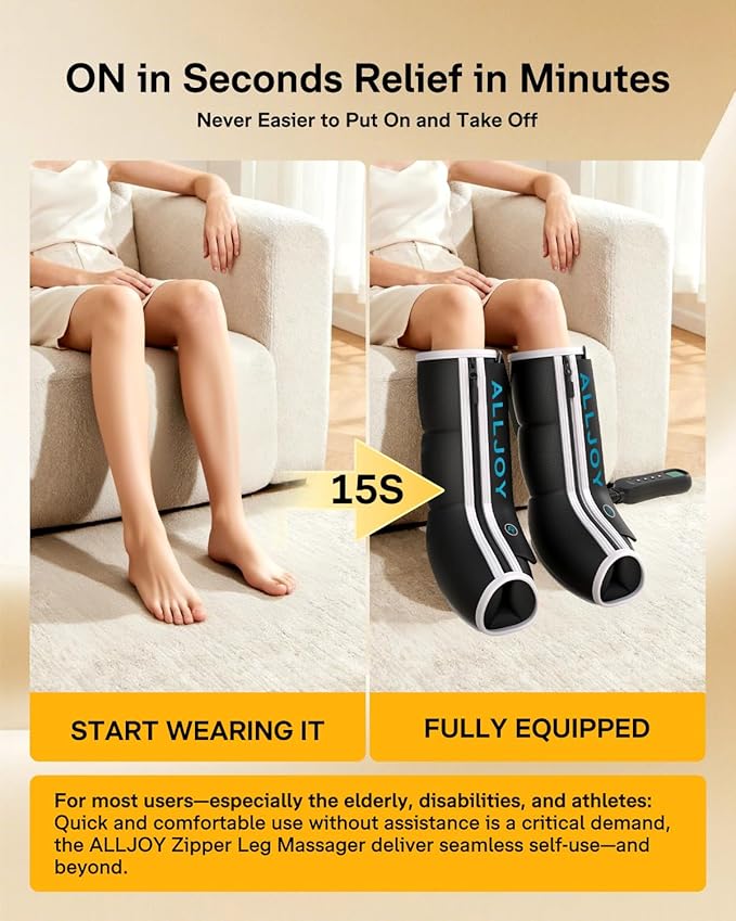 - 【Slip On in 15 Seconds—Fits a Variety of Leg Shapes】Featuring a convenient zipper design instead of traditional Velcro, this massager is as easy to wear as socks—ideal for seniors or those with limited mobility. A built-in pressure sensor intelligently adapts to different leg sizes, ensuring a snug and comfortable fit whether your legs are slender or muscular