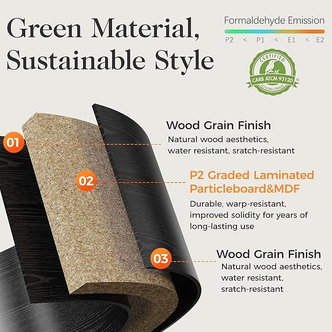 - Sturdy Construction: This farmhouse TV stand is not only safe and environmental-friendly but also has a good weight capacity of 300lbs. It is consists of high-graded-density engineered wood MDF and is certified CARB P2., and the slide and pulley are made of premium metal so it has a long service life. Moreover, the surface is easy to keep clean.