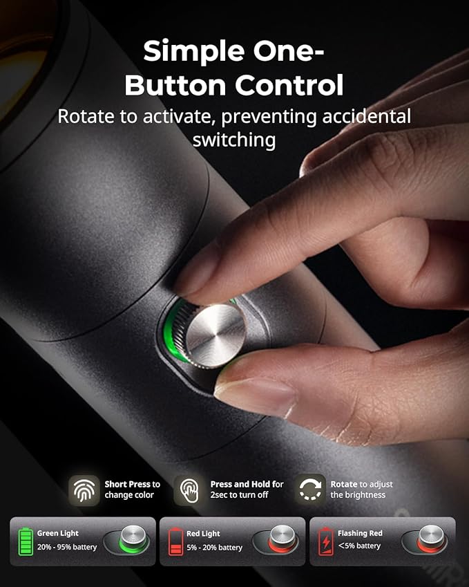 - Compact and Ergonomic Design: With a mere 4.3cm (1.7in) diameter, the handle offers a comfortable and ergonomic grip. Crafted from aluminum alloy in a sleek dark color scheme, this compact and lightweight video light is both stylish and practical, fitting easily into any photography backpack