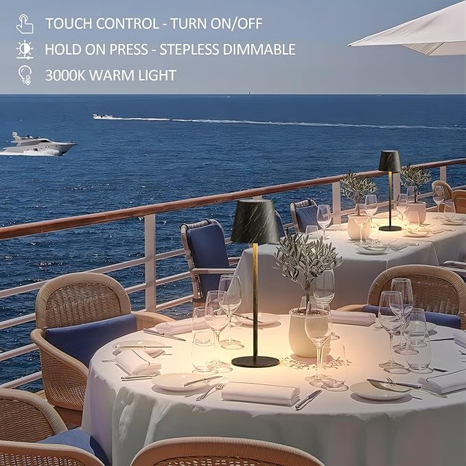 - DIMMABLE DINING LAMP WITH TOUCH CONTROL: LED cordless table lamp owns touch sensor on the top of lamp head. Slightly tap for turning ON or OFF the light. Long press the touch switch to change brightness as you wanted. Brightness has memory function