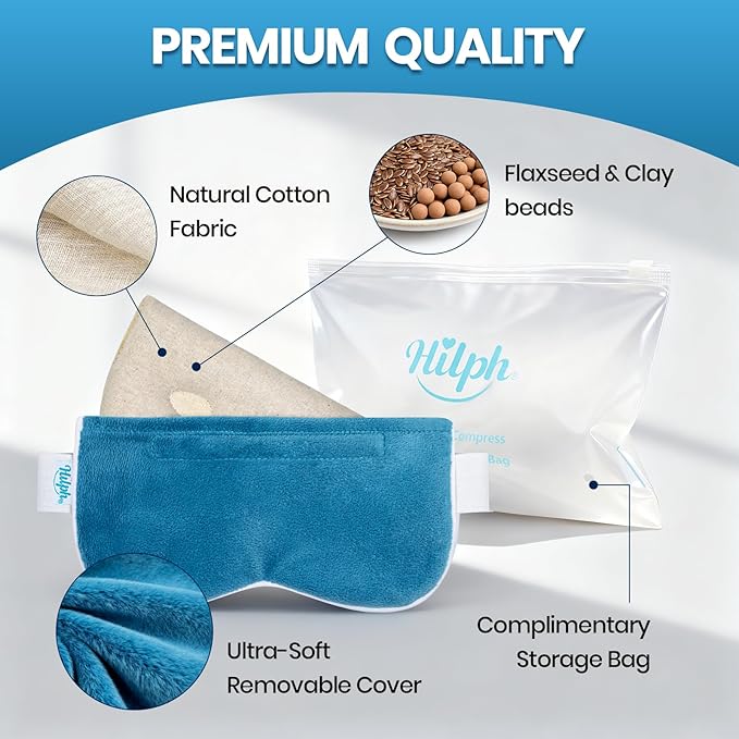 Hilph Microwavable Eye Mask for Dry Eyes, Ultra Soft Reusable Hot & Cold Eye Compress with Flaxseeds, Moist Heat Mask for Blepharitis, Stye, Chalazion, Eye Fatigue Relief
