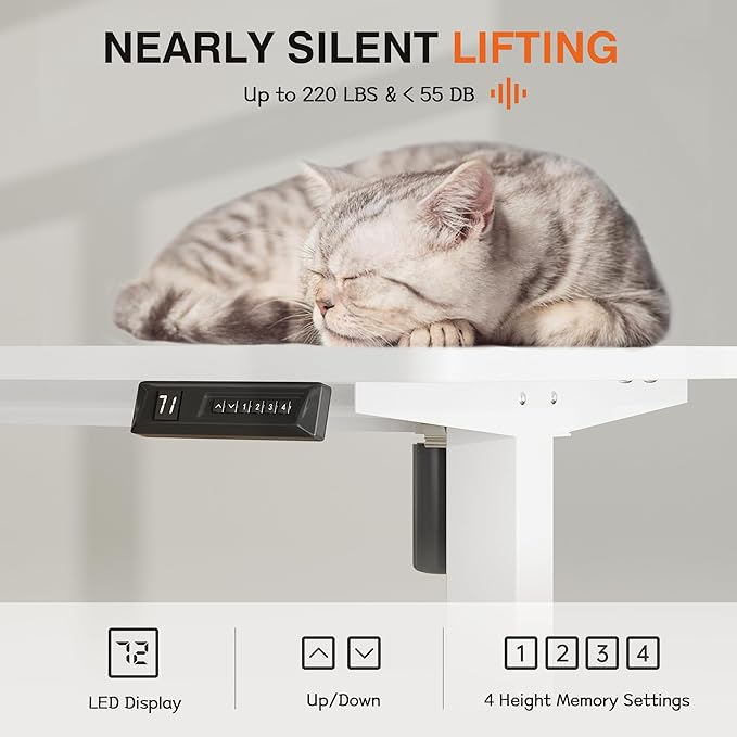 - Memory Electric Lift: Compared with the ordinary workstations, this standing desk can easily control the height using buttons, so that it can be used by people of different heights in different scenes. The design of sitting/standing memory keys allows it to be adjusted quickly and accurately to your preset comfortable height.