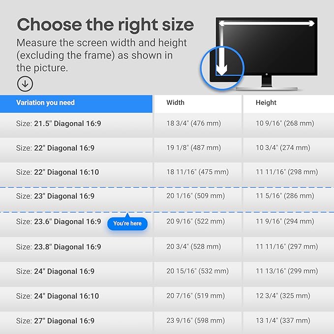 23 inch Blue Light Blocking Screen Protector Panel for 16:9 Widescreen Computer Monitor and Laptop - PC Anti-UV Eye Protection Filter Film - Anti-Scratch Diagonal Frame Shield [2 Pack]