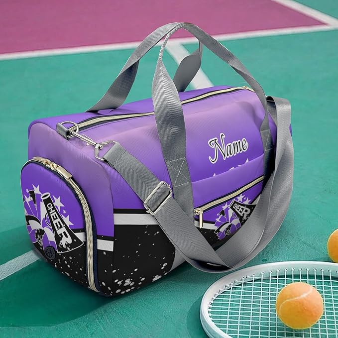 Custom Cheer Sport Gym Duffel Bag Personalized Cheerleading Bags with Name Travel Bag Purple Shoulder Bag for Cheerleader Coach Gift