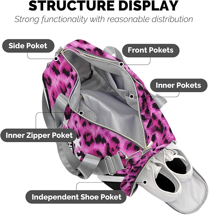 - Convenient Shoe Compartments: Dimensions;17.7x7.8x9.2 inch(LxWxH),capacity 21L, with multiple Compartment, Cheer Shoulder bag Weekender Bag, Sleepover Bags designed to accommodate your workout essentials. say goodbye to messy bags! Our duffel bag features separate shoe compartments, allowing you to keep your shoes organized and separate from the rest of your belongings. No more worrying about dirt or odors!