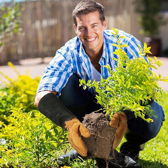 - Thorn-Proof Design: Built to shield hands from thorns, sharp branches, and prickly plants, making these heavy duty cowhide leather gauntlets ideal for rose pruning, cactus handling, and tough yard work