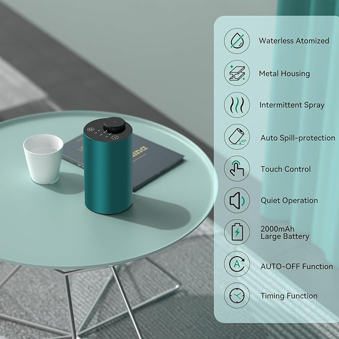 - 【Pure Essential Oil Diffuser — Waterless, Natural, Safe & Efficient】Ditch diluted fragrances! Unlike traditional ultrasonic diffusers, nebulizer, humidifier that dilute oils with water, our patented waterless technology converts 100% pure essential oils into nano mist—no heat, no water, no damp residue. Experience 3X longer-lasting aroma that fills large rooms faster and efficiently. A natural, safer choice for allergy-sensitive homes, eco-warriors, or anyone craving chemical-free air purification