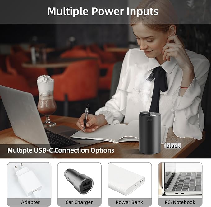 - 【Portable & Versatile Use — Home, Car, Office, Travel】Designed for modern life: Smaller than a soda can, this scent diffuser fits car cup holders, desks, or bags. A handy, cordless, automatic mini machine. Power via USB-C, car charger, or power bank. A full charge delivers 10 hours of continuous use or 48 hours in eco mode. Enjoy spa-like freshness at your desk, calming aroma lavender in the bedroom, or an energizing boost scent during road trips—360° fragrance coverage anywhere